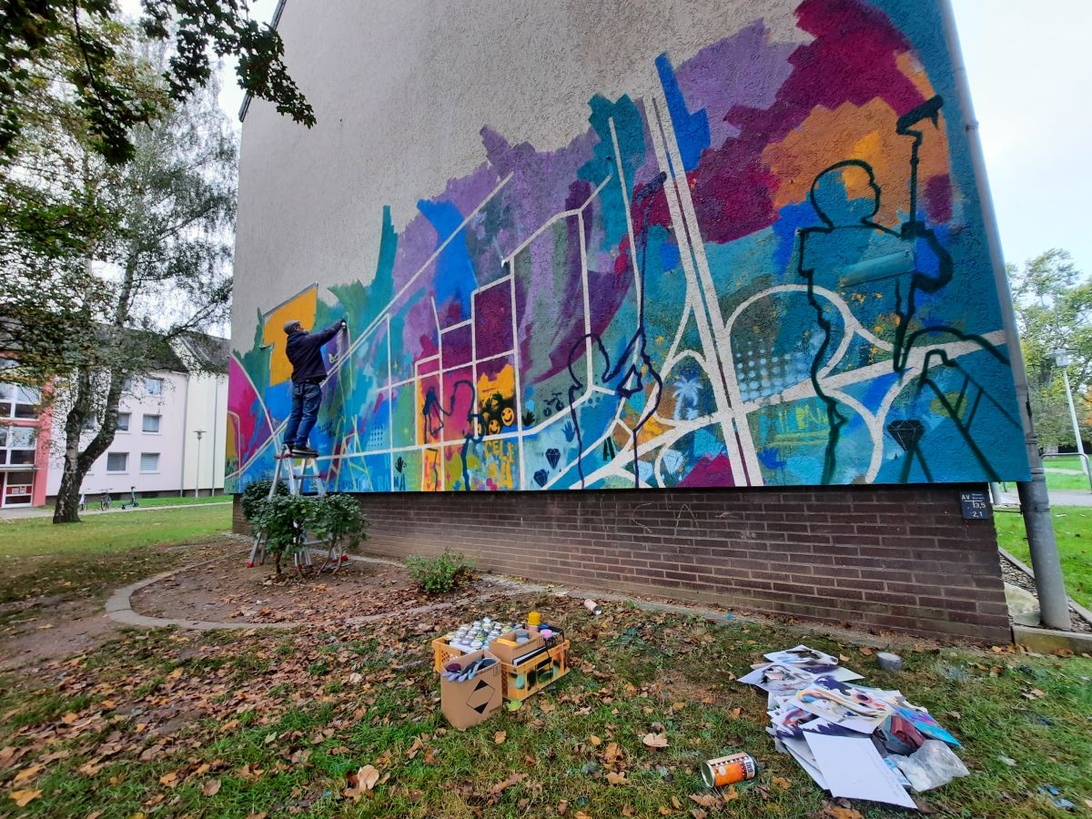 „Darum geht‘s ja letztlich auch irgendwie,“ erklärt Görgens sein Werk. „Die Menschen einzubeziehen, sie in die Kunst einzubinden, die in ihren Stadtteil kommt und ihn bunt und lebendig und schön macht.“